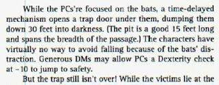 - Just as the bats fly out, a pit trap pens up beneath the heroes. No saving throw! They just fall in.