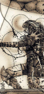Cryvistin's Really Red Room: Angry, the heroes had seen Cryvistin go through a door further down the hall. They went in. The front area is full of black curtains that obscure your view, and once you move them, you see that everything in Cryvistin's room is the same shade of red. This effect is so disorienting that PCs get a -1 to all die rolls while in the room. I found this to be a very amusing idea.