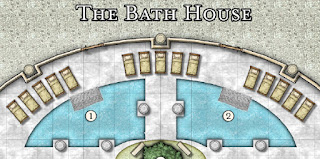We get a list of the different baths and what they do: There's a salt bath, a herbal bath, etc. Each bath has a very powerful effect such as healing d4 hit points, gaining the effect of a bless spell, etc.