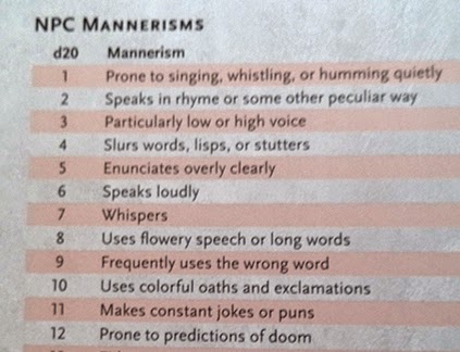 I love NPCs! We get piles o' charts to help detail your NPCs, from appearance to abilities. I especially like the charts on ideals and the one on secrets. A lot of this stuff is right out of Chris Perkins' DM Experience columns.