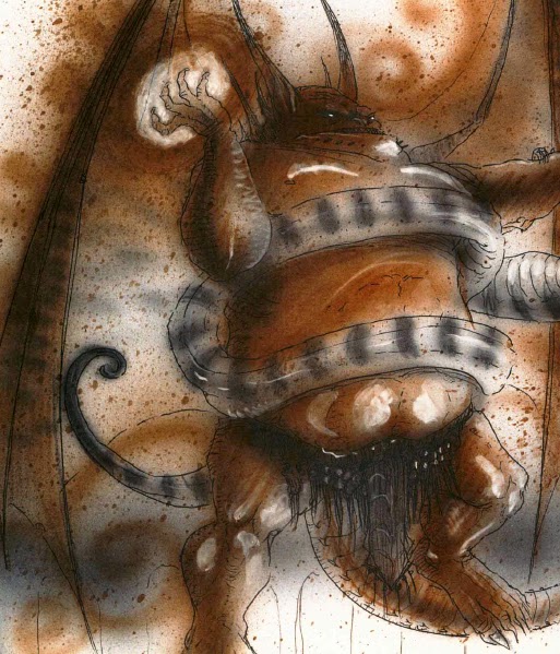 I really like the artistic depiction of them, although it's got some weird blue tint thing going on. I'd really like someone to paint what a female pit fiend looks like. Do they look just like the males?